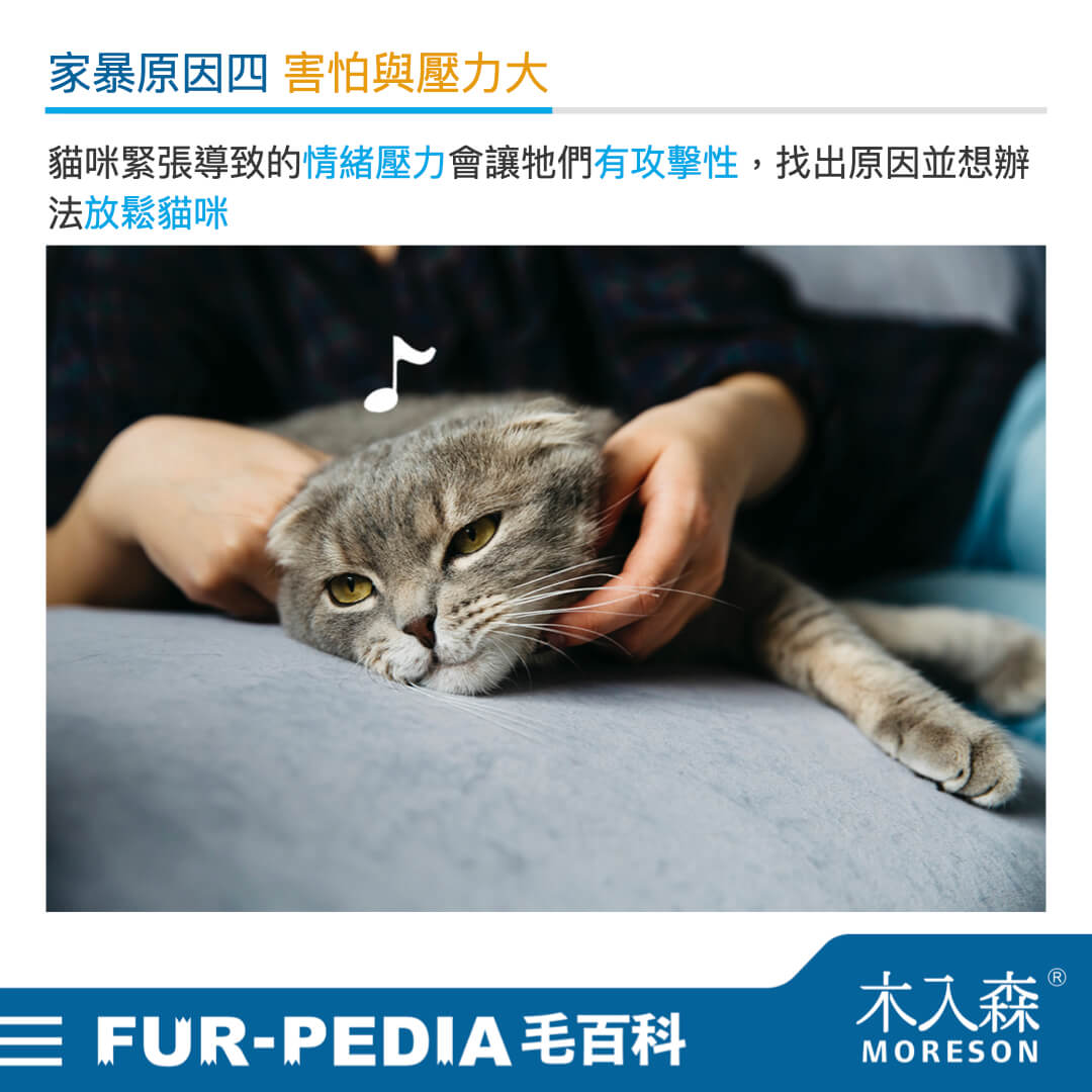 牠們會攻擊都是因為太害怕太緊迫造成,我們必須要多讓貓咪放鬆,可以坐在牠看的到你但有段距離的位置,輕聲呼喚牠,但也不強迫貓咪靠近,做自己的事情陪伴牠就好,當牠願意靠近時多跟牠說說話,摸摸並按摩貓咪臉部,可以幫助牠放鬆,也可以播幫貓咪放鬆的音樂,或是給貓咪吃情緒舒緩的營養品、噴點貓咪費洛蒙在環境中等,都是很適合也推薦的方式喲! 當然還是要找到事發的根本原因,減少造成貓咪壓力的可能,是讓貓咪遠離緊迫的最好方法~