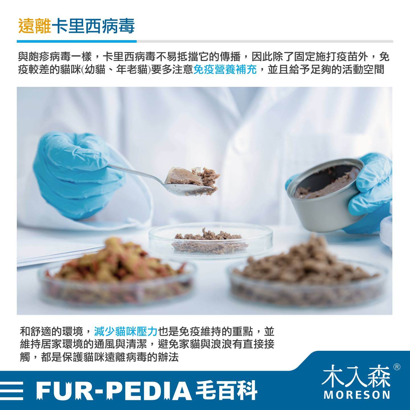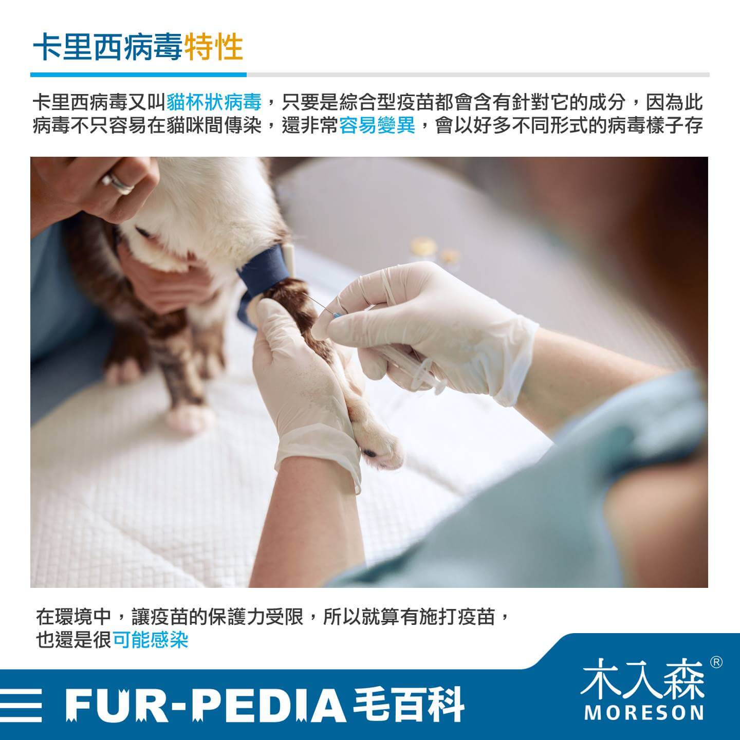 卡里西病毒又叫貓杯狀病毒,只要是綜合型疫苗都會含有針對它的成分,因為此病毒不只容易在貓咪間傳染,還非常容易變異,會以好多不同形式的病毒樣子存在環境中,讓疫苗的保護力受限,所以就算有施打疫苗,也還是很可能感染。