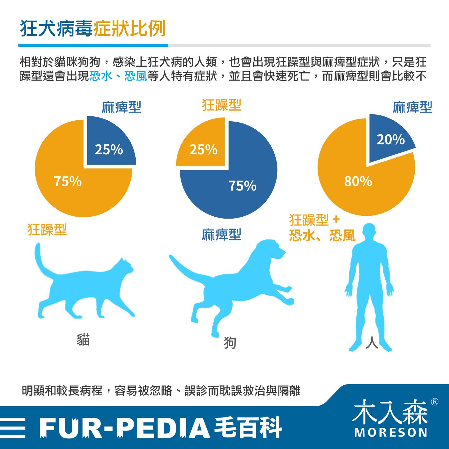 為什麼說犬貓出現症狀就會死亡呢? 那是因為出現症狀時,病毒已經進入腦部開始繁殖,腦與脊髓均被病毒破壞,靠免疫系統、疫苗、藥物都是無法清除病毒與讓腦神經恢復健康,因此非常致命與讓感染者痛苦,預防是此病最大的解藥