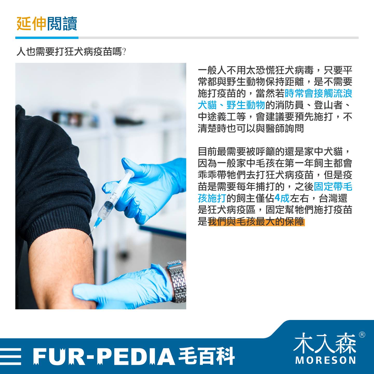 狂犬病毒是屬於「人與動物共通的傳染病」,從2013年開始到目前台灣一直都還屬於狂犬病疫區國家,為了避免病毒大流行,狗狗貓貓是被強制一定要打狂犬病疫苗的
