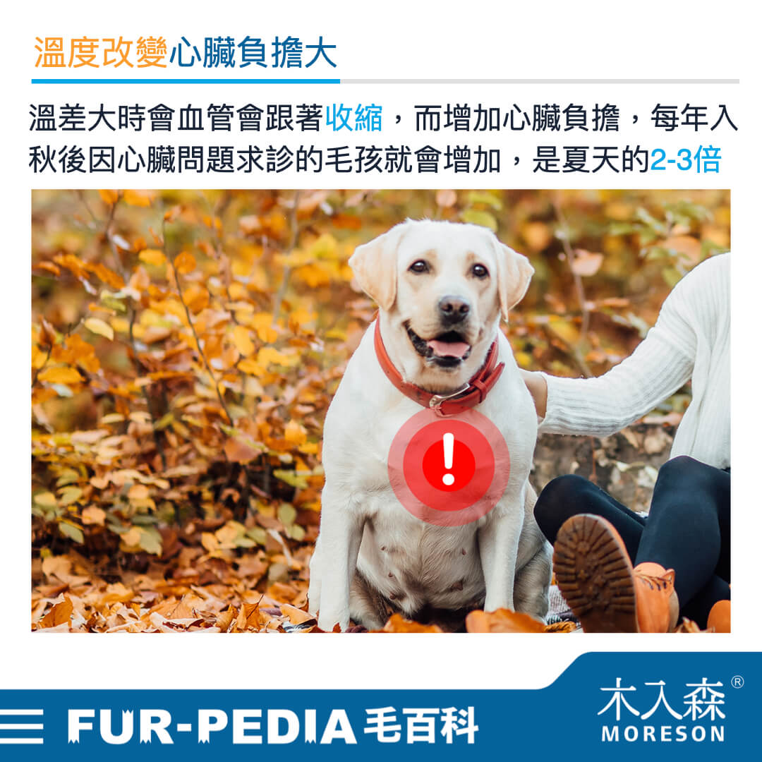 溫差起伏大時會血管也會跟著收縮,這會增加心臟負擔,所以每年入秋後因心臟問題求診的毛孩都相當多,是夏天的2-3倍,雖然貓狗的心臟問題多屬於瓣膜、心肌等慢性疾病,但急性發作時會導致心肺衰竭而危及性命。
