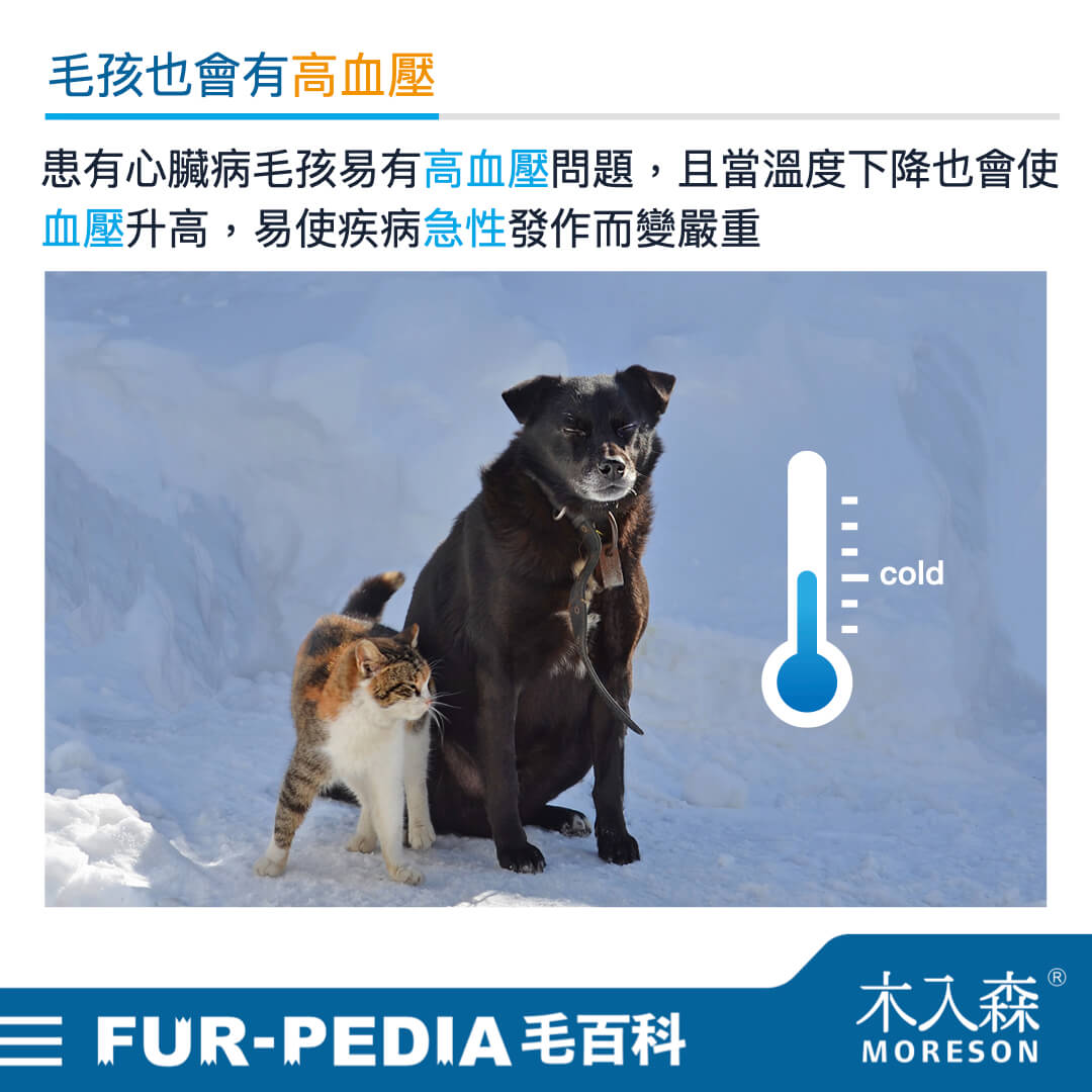 患有心臟疾病的毛孩本身就容易有高血壓的問題,且當環境溫度下降時,體內血管會跟著收縮,也會使血壓升高,但犬貓的心臟病多是「慢性的經過、急性的發生」,意指平時慢性的心臟問題會逐漸使健康惡化,但由於溫差、壓力就可能導致急性發作造成危險。