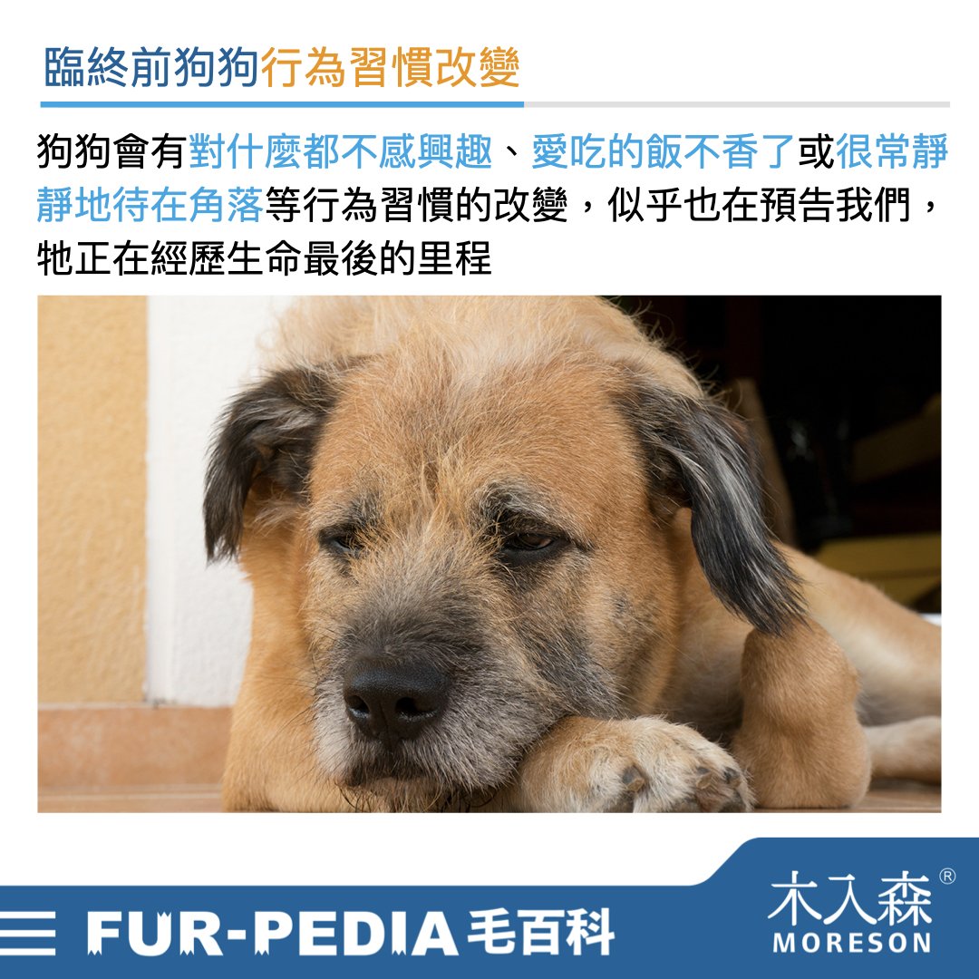 生物倫理學家Jessica Pierce在教導飼主如何面對寵物離世的著名書籍《The Last Walk》中提到,當狗狗即將感受到自己年限將至,是會變得比以前更愛獨處,把自己從家庭中孤立起來。