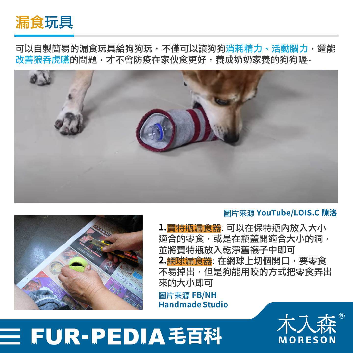 可以自製簡易的漏食玩具給狗狗玩,不僅可以讓狗狗消耗精力、活動腦力,還能