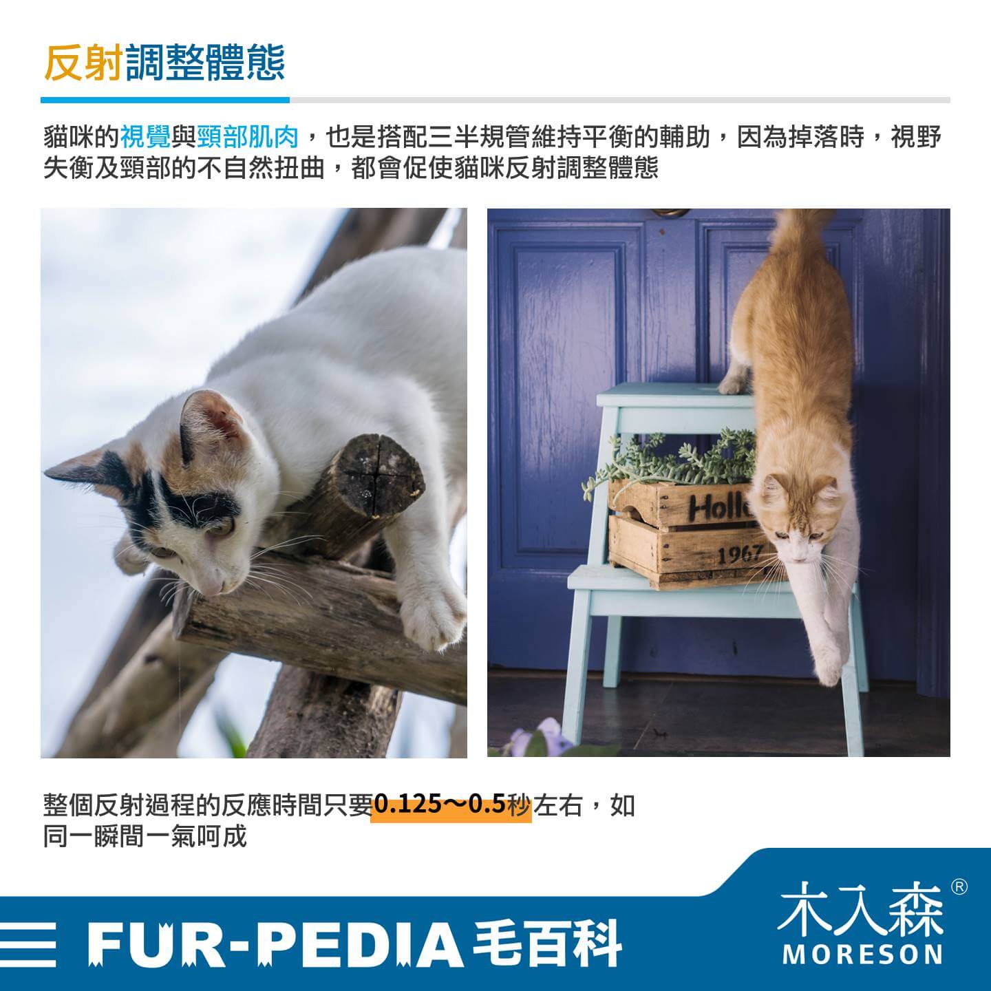 貓咪的三半規管尤其敏感且高性能,可自動計算落下時頭部的方向,即使從高處落下也能重整身體姿勢,安全著地。