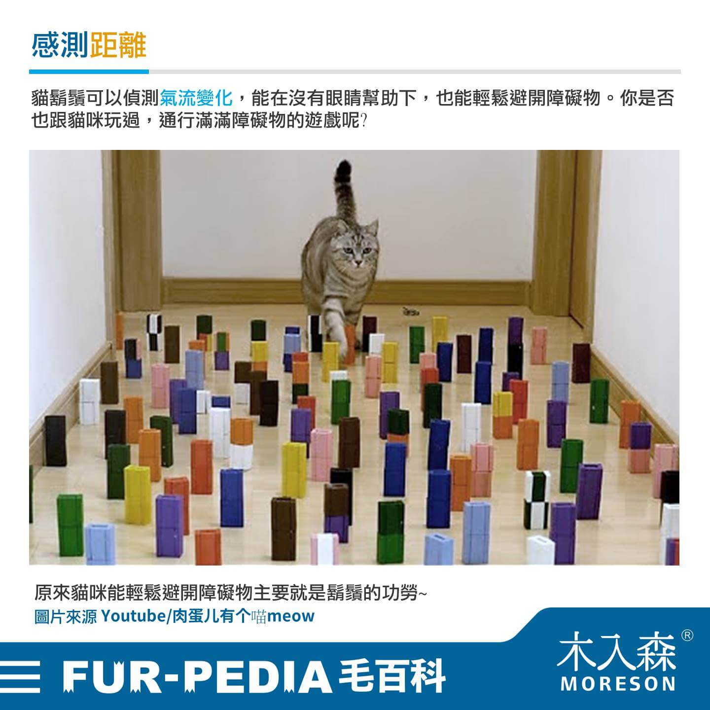 貓鬍鬚可以偵測氣流變化,能在沒有眼睛幫助下,也能輕鬆避開障礙物。你是否也跟貓咪玩過,通行滿滿障礙物的遊戲呢? 原來貓咪能輕鬆避開障礙物主要就是鬍鬚的功勞~