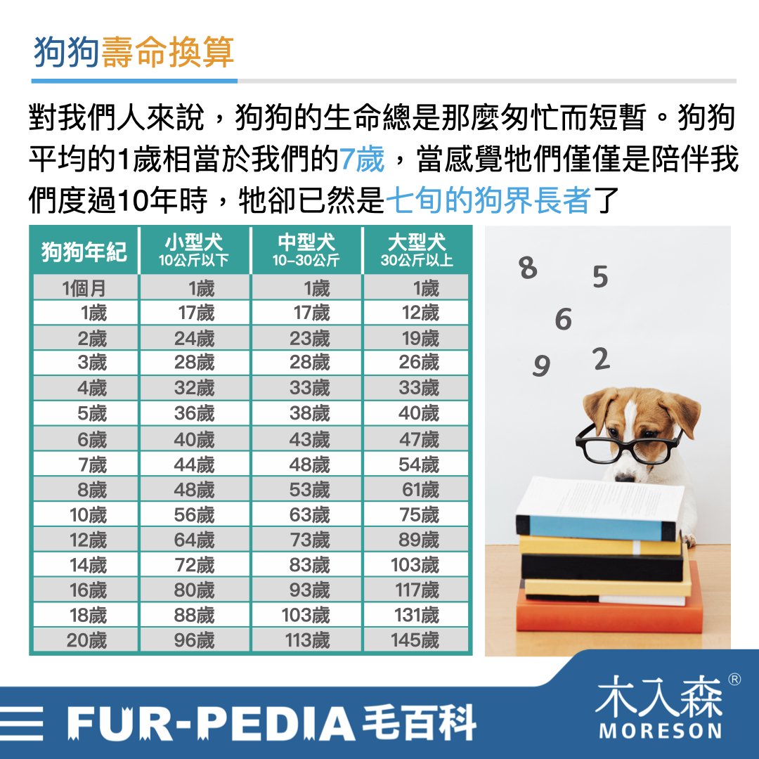 狗狗平均的 1 歲相當於我們的 7 歲,當感覺牠們僅僅是陪伴我們度過 「10 年」時,牠卻已然是「七旬的狗界長者」了。