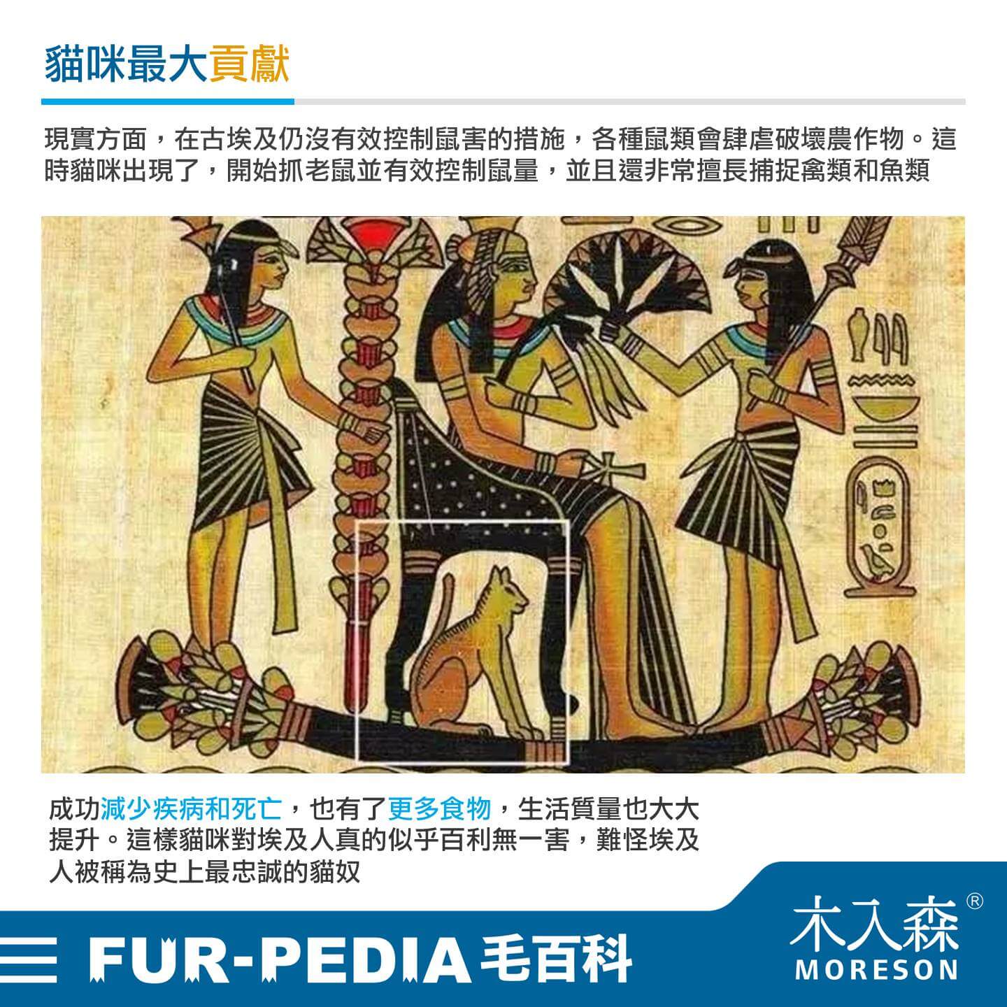 現實方面,在古埃及仍沒有效控制鼠害的措施,各種鼠類會肆虐破壞農作物。這時貓咪出現了,開始抓老鼠並有效控制鼠量,並且還非常擅長捕捉禽類和魚類,成功減少疾病和死亡,也有了更多食物,生活質量也大大提升。這樣貓咪對埃及人真的似乎百利無一害,難怪埃及人被稱為史上最忠誠的貓奴。