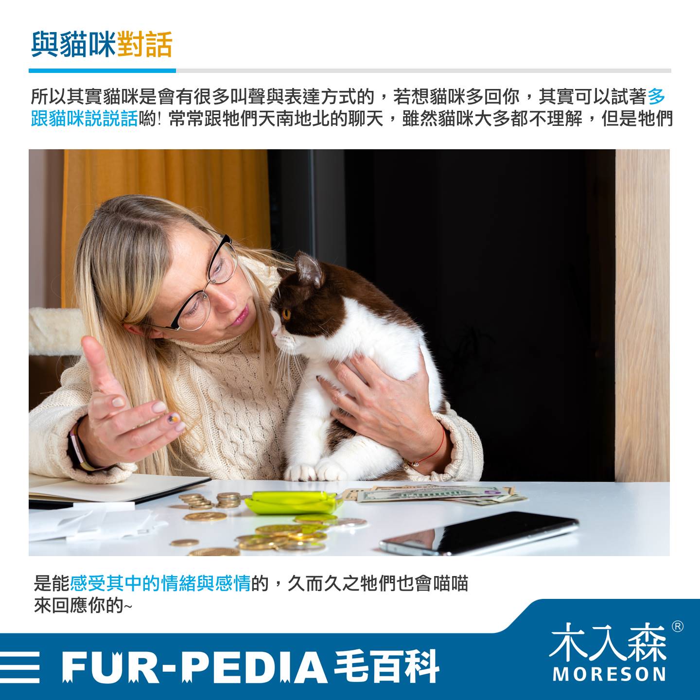 所以其實貓咪是會有很多叫聲與表達方式的,若想貓咪多回你,其實可以試著多跟貓咪說說話喲! 常常跟牠們天南地北的聊天,雖然貓咪大多都不理解,但是牠們是能感受其中的情緒與感情的,久而久之牠們也會喵喵來回應你的~