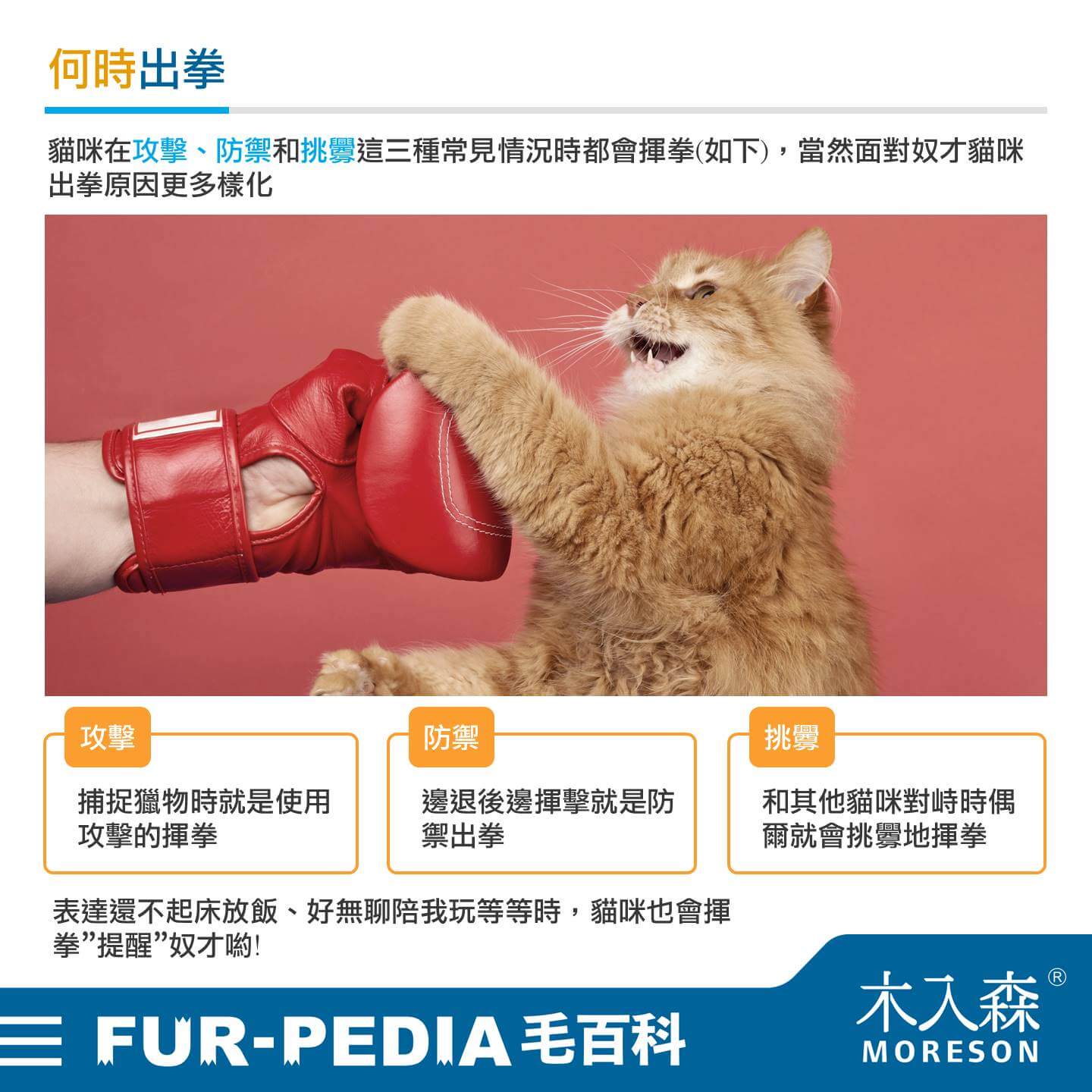 在什麼情況使用? 貓咪何時會想使用喵喵拳? 是攻擊、防禦還是挑釁?