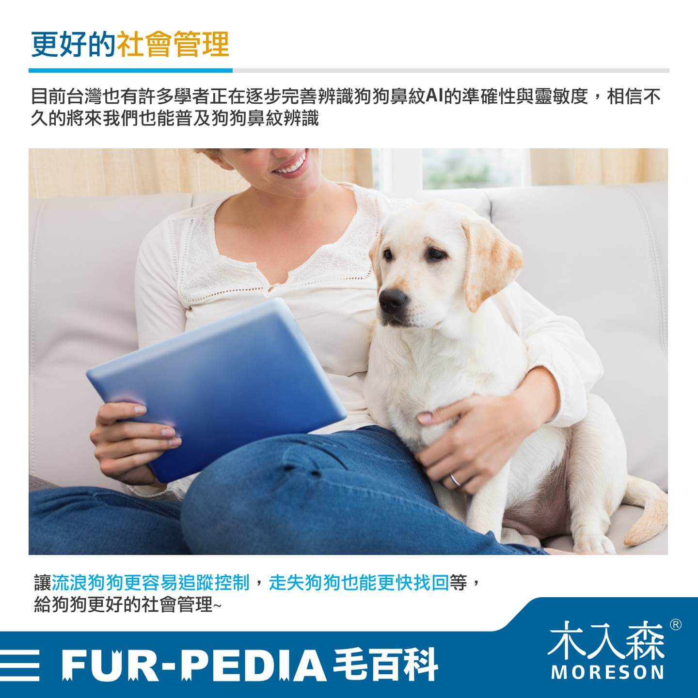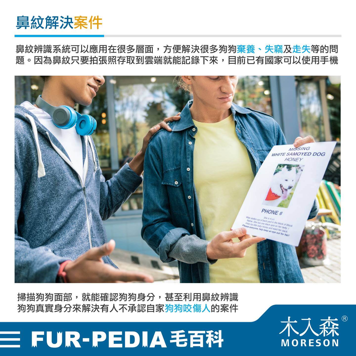 狗狗鼻紋辨識和紀錄甚至比人指紋更方便,不需要壓印狗狗鼻子紋路,只要像拍證件照一樣,通過拍照來記錄狗狗口鼻處的影像,之後再用電腦掃描狗狗面部,就能知道這是誰家的狗狗了。看來鼻紋掃描更像是現今的人臉辨識系統呢~