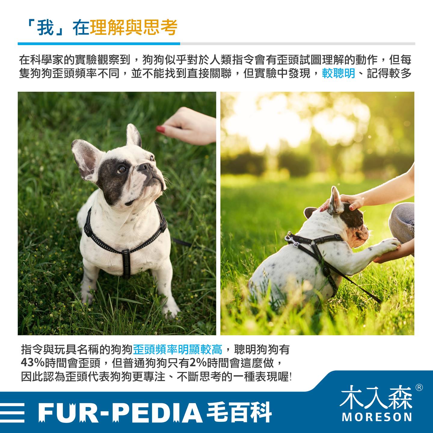 在科學家的實驗觀察到,狗狗似乎對於人類指令會有歪頭試圖理解的動作,但每隻狗狗歪頭頻率不同,並不能找到直接關聯,但實驗中發現,較聰明、記得較多指令與玩具名稱的狗狗歪頭頻率明顯較高,聰明狗狗有43%時間會歪頭,但普通狗狗只有2%時間會這麼做,因此認為歪頭代表狗狗更專注、不斷思考的一種表現喔!
