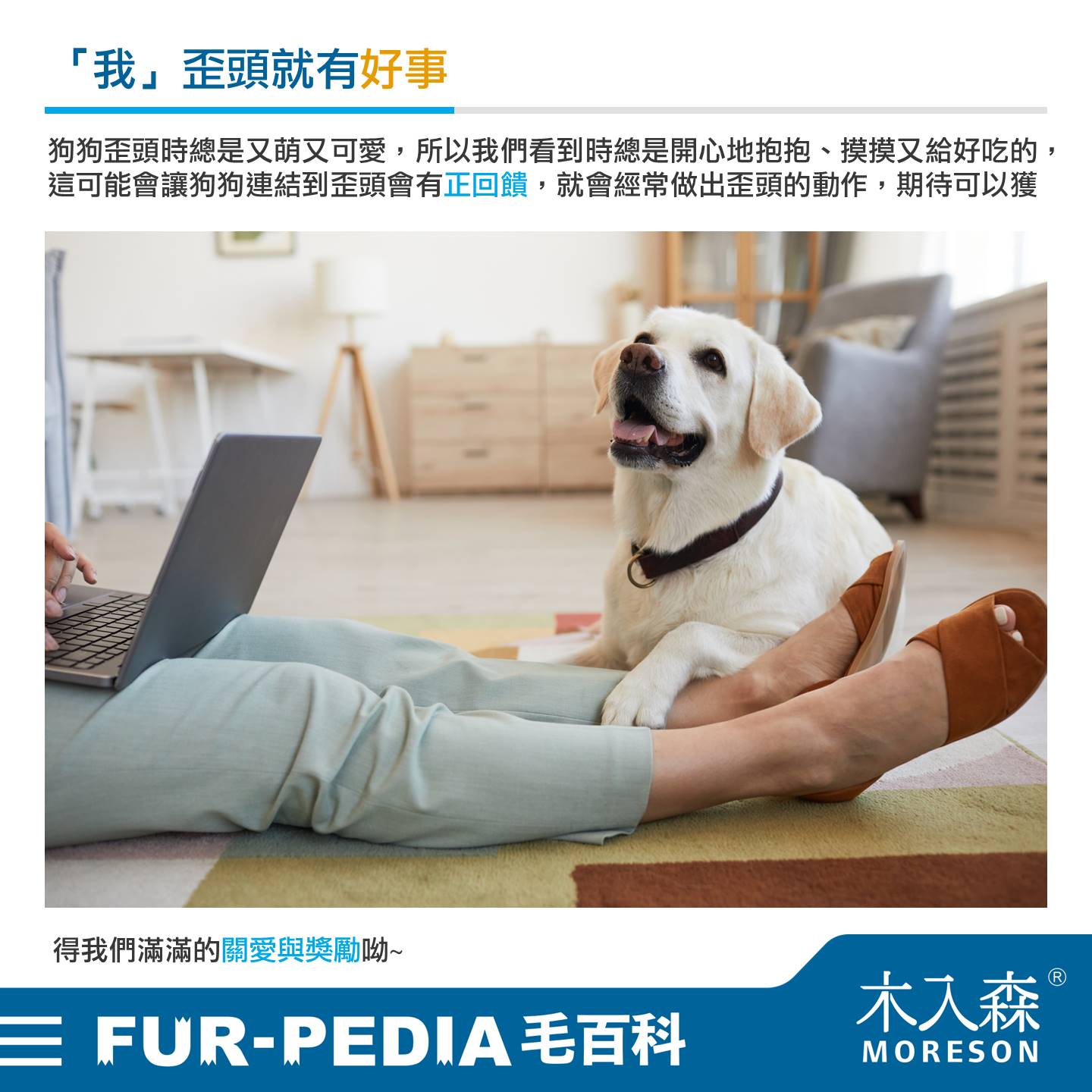 狗狗歪頭時總是又萌又可愛,所以我們看到時總是開心地抱抱、摸摸又給好吃的,這可能會讓狗狗連結到歪頭會有正回饋,就會經常做出歪頭的動作,期待可以獲得我們滿滿的關愛與獎勵呦~