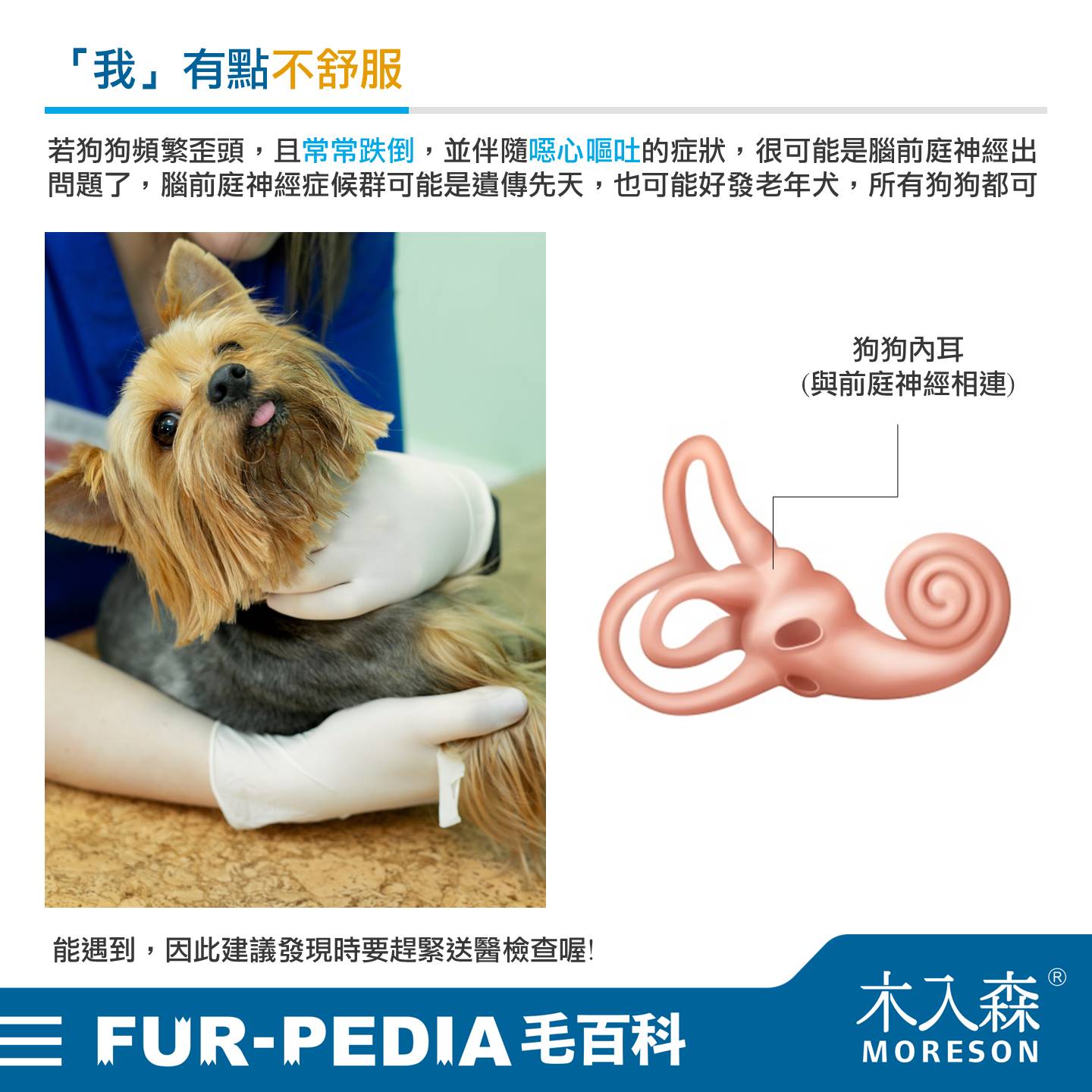 若狗狗頻繁歪頭,且常常跌倒,並伴隨噁心嘔吐的症狀,很可能是腦前庭神經出問題了,腦前庭神經症候群可能是遺傳先天,也可能好發老年犬,所有狗狗都可能遇到,因此建議發現時要趕緊送醫檢查喔!
