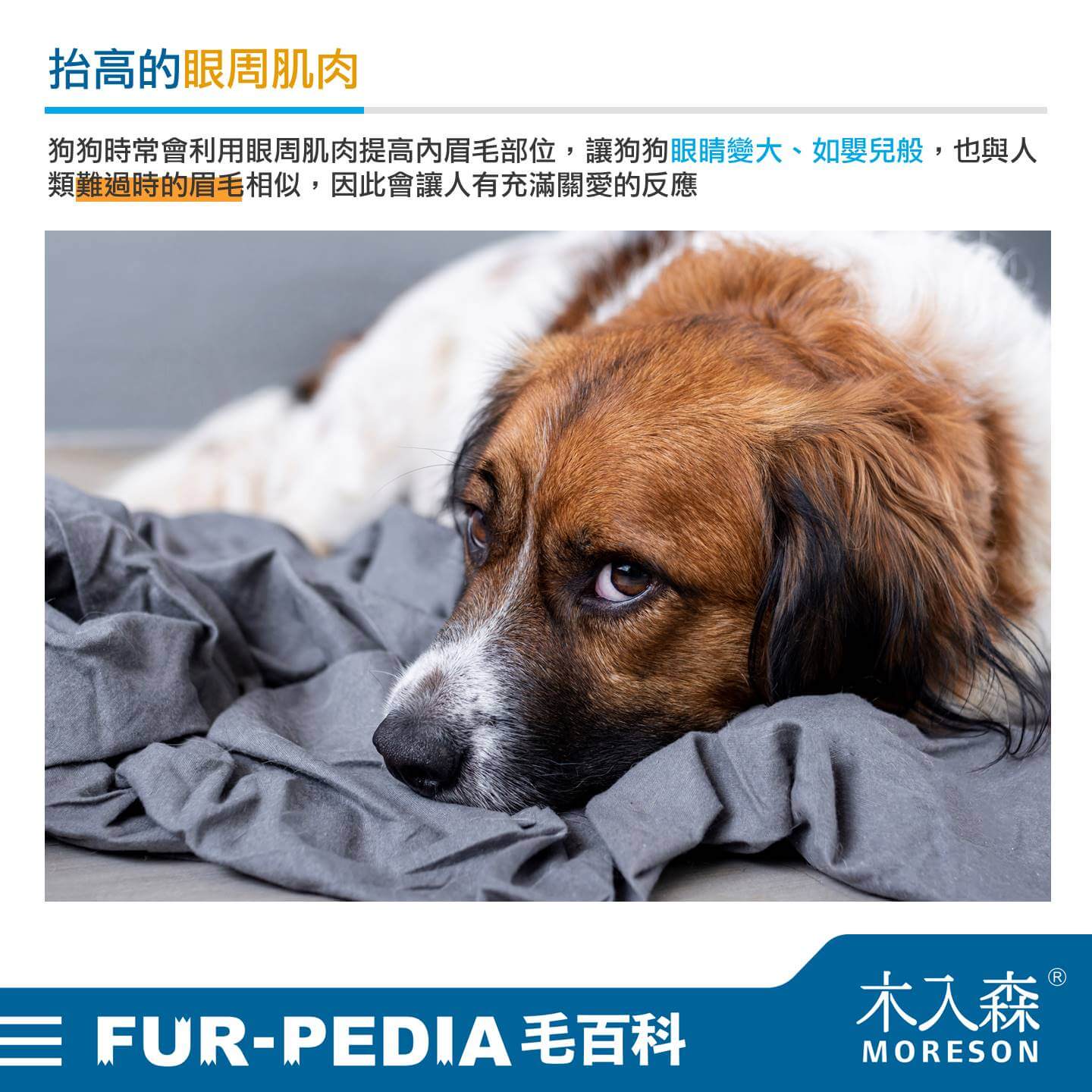 狗狗時常會利用眼周肌肉提高內眉毛部位,讓狗狗眼睛變大、如嬰兒般,也與人類難過時的眉毛相似,因此會讓人有充滿關愛的反應。