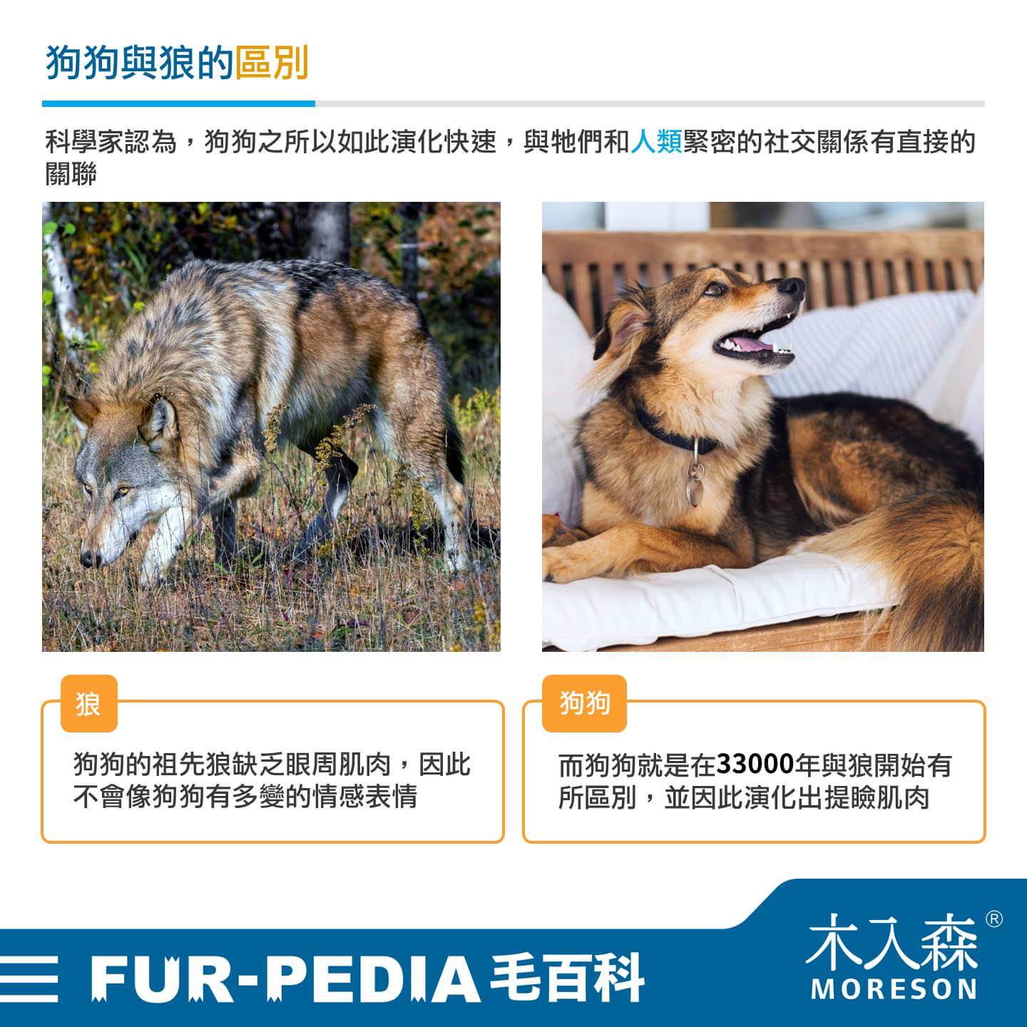 狗狗的祖先狼缺乏眼周肌肉,因此不會像狗狗有多變的情感表情,而研究發現狗狗就是在 33000 年與狼開始有所區別,並因此演化出提瞼肌肉。科學家認為,狗狗之所以如此演化快速,與牠們和人類緊密的社交關係有直接的關聯。