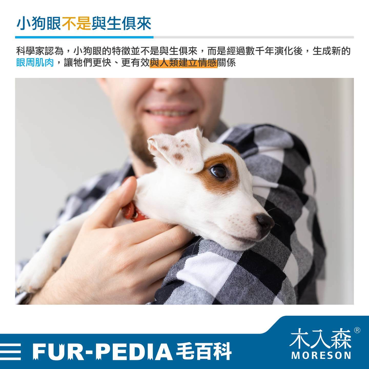 科學家認為,小狗眼的特徵並不是與生俱來,而是經過數千年演化後,生成新的眼周肌肉,讓牠們更快、更有效與人類建立情感關係。