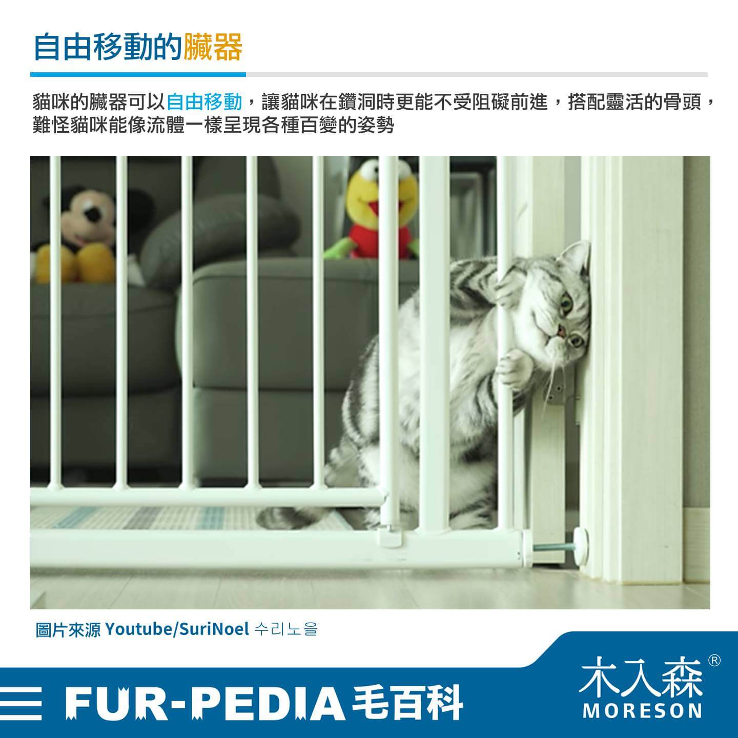貓咪的臟器可以自由移動,讓貓咪在鑽洞時更能不受阻礙前進,搭配靈活的骨頭,難怪貓咪能像流體一樣呈現各種百變的姿勢。