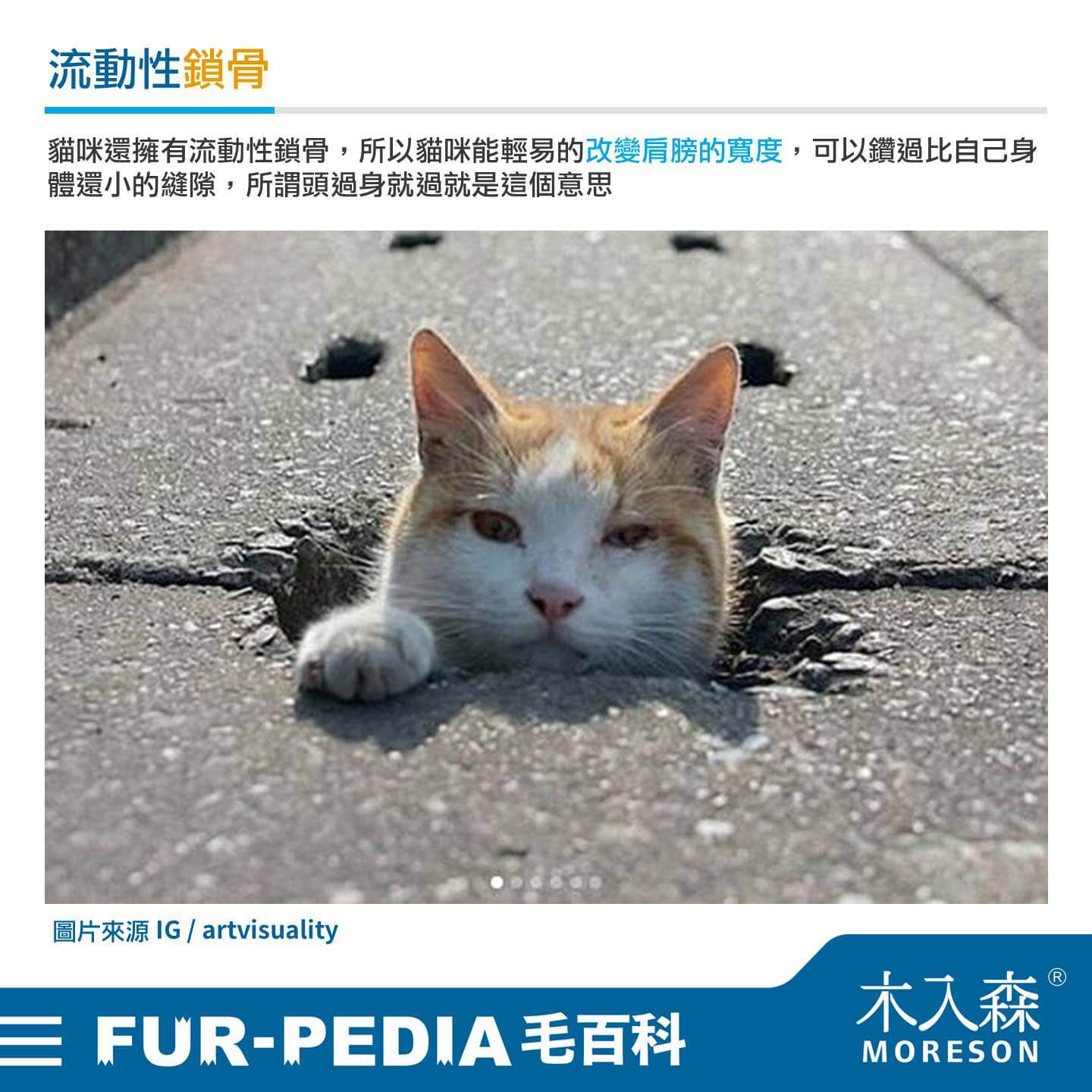 貓咪還擁有流動性鎖骨,所以貓咪能輕易的改變肩膀的寬度,可以鑽過比自己身體還小的縫隙,所謂頭過身就過就是這個意思~