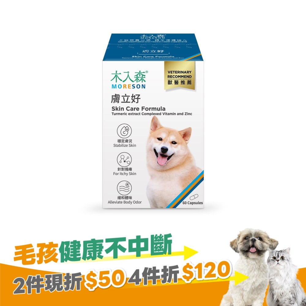 木入森犬寶膚立好,打造狗狗皮膚保健層層防護網。全方位營養搭配,管理皮脂分泌與皮膚乾燥,針對皮膚敏感、搔癢等皮膚刺激,維持皮膚正常功能。
