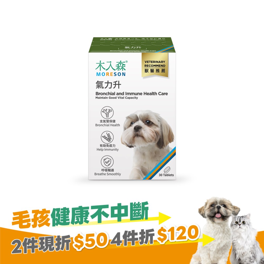 家中狗狗呼吸聲很大、常常氣喘嗎?木入森《犬寶氣力升》,一錠雙效,9 大配方呵護氣管與免疫力,養成良好肺活力。是適合「短鼻子狗狗」、「小型犬」、「肉肉毛孩」、「熟齡毛孩」的氣管保健食品。