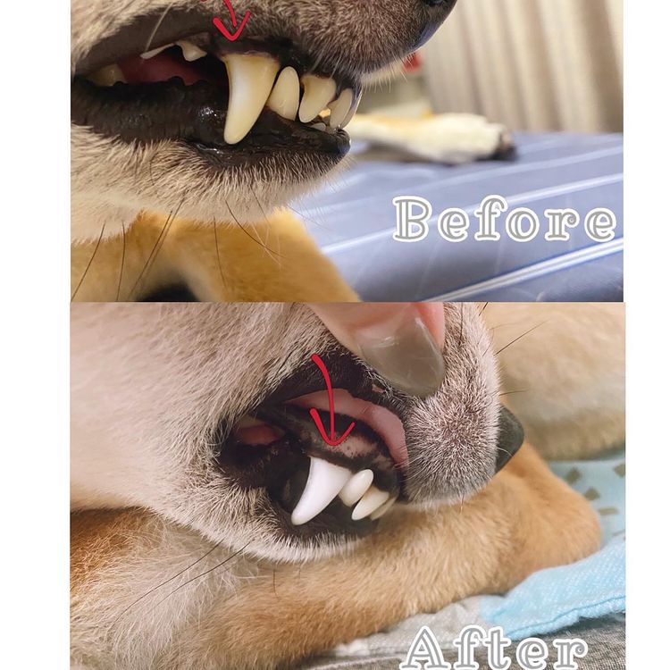 「犬寶固齒麗口滴劑」試用2週後 發現黃黃的牙垢竟然消失了 看起來也不會濁濁的了呢!